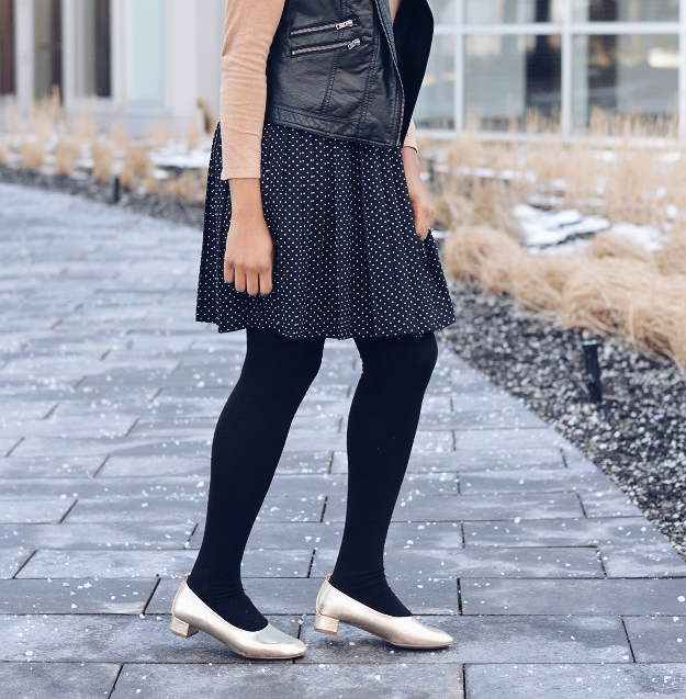This post is long overdue as I took these photos over a month ago and only sharing it now. To me, a circle skirt is a girl’s best friend. They are so flattering on all body shapes, and so easy to style. Also very feminine and chic. When I saw this polka dot circle skirt I couldn’t leave the store without buying it, it’s such a cute piece. I’m sure you know by now that I love a good vest. I mean they add the fun to any look and this leather vest is no exception.