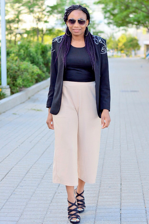 Never say never! Culottes for been trending for some time and I had the notion that it would not look good on me. But who was I kidding?! I walked in to fair weather store and they were having a sale on specific items, this culotte was one of them. Got inspired to try it, and I did. I looked in the mirror and realised they look weird on me, probably the top I wore. I decided to pair it with a top I just bought and they looked great. So I bought it…lol. I reassured myself if I got home and the fit wasn’t right I will returned it. Believe me those change room lights have a way of tricking you to believe that what you are wearing is spot on …lol