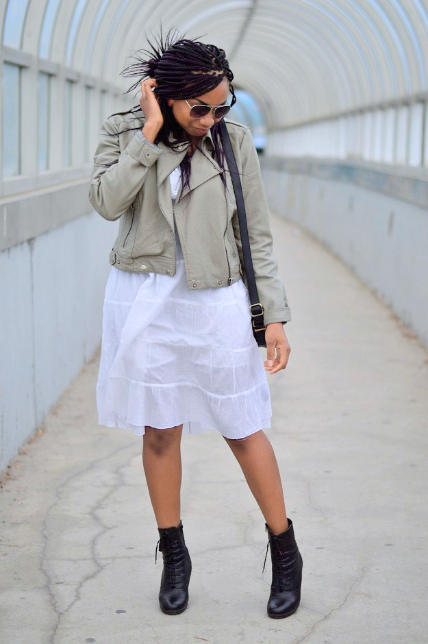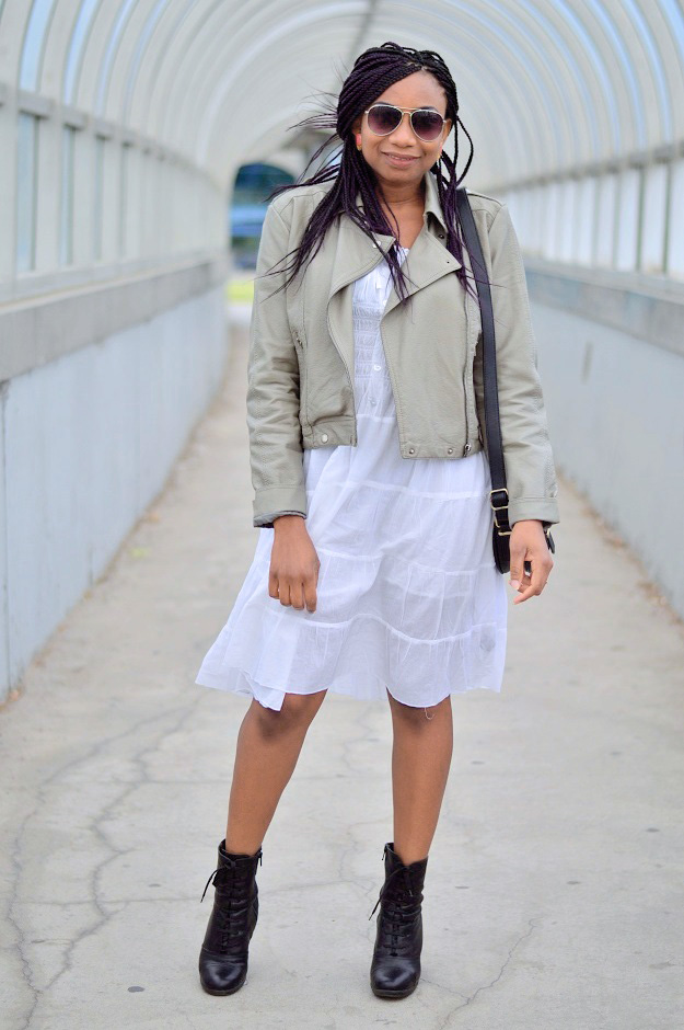 So we’ve moved from warmer temperatures to chilly and cold. The change was so swift I wasn’t ready for it! I never thought I would pull out this jacket from where it was tucked away but again I live in Canada. The weather is so unpredictable, hope it warms up soon. I love this jacket, the colour is just amazing I always get compliments when ever I wear it. Its the perfect match for this light flowy summer dress which is going to be on repeat when it warms up. I wanted to keep this look as neutral as possible and I love how it turned out. Battling the cold weather doesn’t mean you don’t have to look chic right?