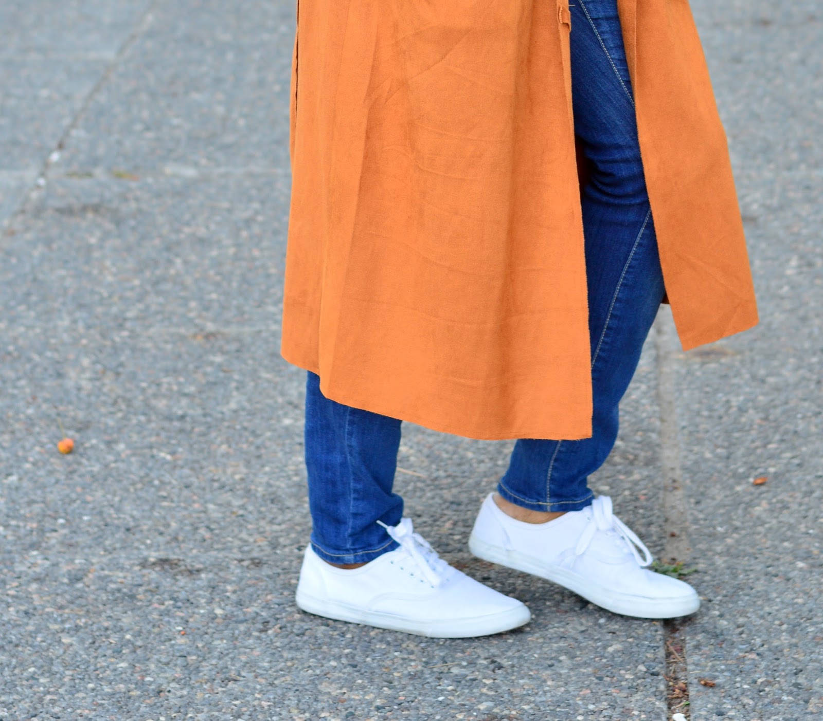 This trench coat in orange suits perfectly on you, I love it 🙂