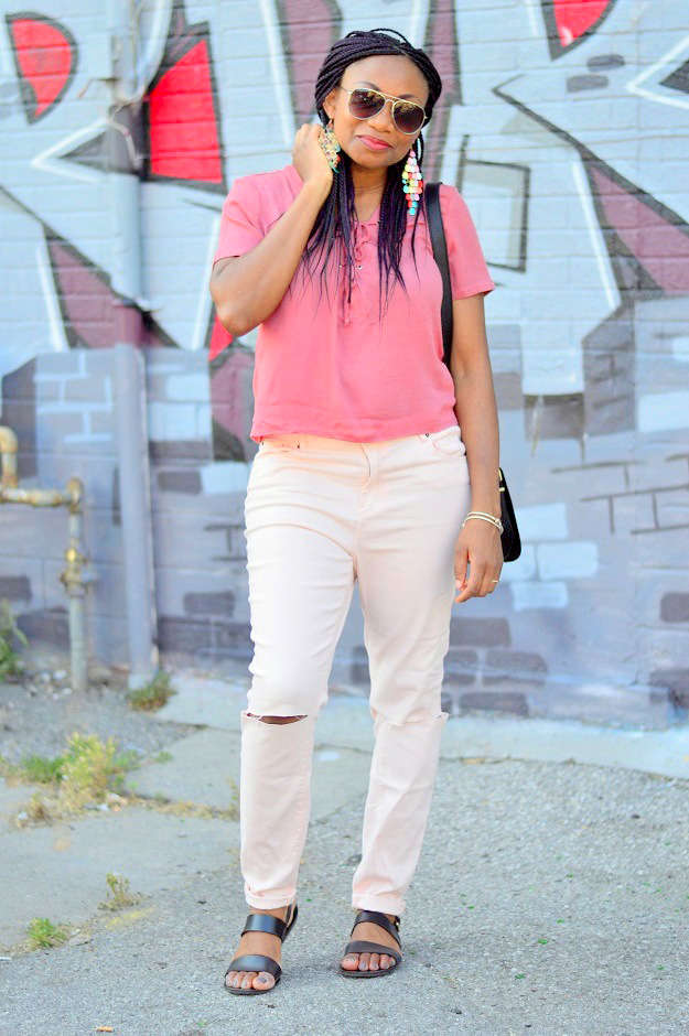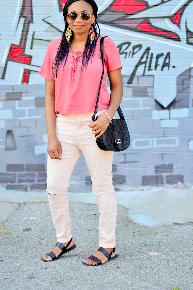 This past weekend we went to kensington market, it was nothing short of fun. For those who don’t know kensington market is a multicultural and vibrant neighborhood in Toronto. The outdoor market consist of food stores, bakery, shops that sell a wide variety of new and used clothes, live music and lots of restaurants! It is one of those places you just have to see. I kept my look simple, comfy and chic. This pink top from sirens paired with pants from Forever 21 is the perfect casual look for long walks. Sandals is from Old navy, a new favorite which is so soft and comfortable. Enjoy the photos I took on that day even though it doesn’t really show the beauty of this place.