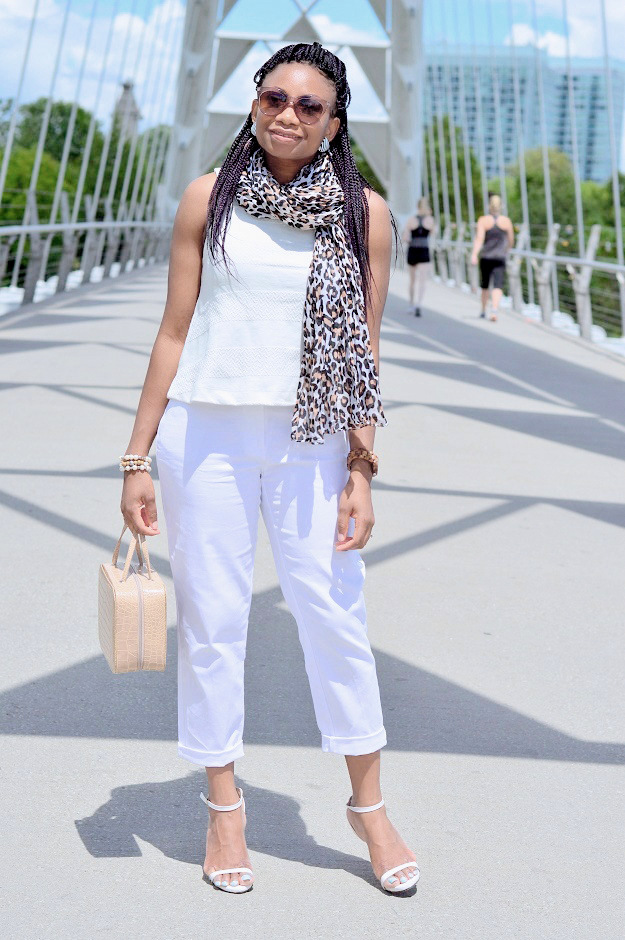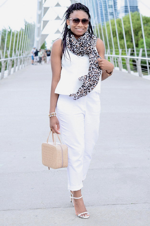 On a lighter note, I wore this outfit last weekend on a trip to lake shore boulevard. It was a nice, sunny and breezy day although it rained shortly after taking these photos. I went for a white look but wanted to add a little leopard and nude to spice things up.